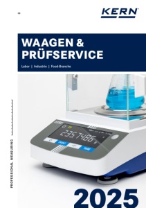 6 NEW IN → 2025 Vielseitig, präzise, akkurat → Präzisionswaage KERN PDS/PDT Die Präzisionswaage mit innovativem Touch-Display vereint modernste Technik und vielseitige Funktionen wie Statistik, Zählfunktion und Prozentwägung. Ideal für die Pharmaindustrie, unterstützt sie höchste Datenintegrität nach FDA-Standards. Mit Hilfe der Schnittstellen lassen sich Wägewerte mühelos übertragen. Inklusive Windschutz und Unterflurwägung für maximale Präzision. Details, siehe Präzisionswaagen Präzision neu definiert → Analysenwaage KERN ADS/ADT Unsere Analysenwaage mit Touch-Display bietet eine Vielzahl an Funktionen, von der Statistik bis zur Prozentwägung. Ideal für Pharma und Labor. Details, siehe Analysenwaagen Kompakt und zuverlässig → Thermodrucker KERN YKC-01 Die ideale Ergänzung zu Ihrer Waage. Perfekt zur Dokumentation von Wägedaten und für den täglichen Einsatz. Details, siehe Zubehör Perfekter Schutz für Präzision → Polyoxymethylen-Etuis POM Die KERN Prüfgewicht-Etuis aus hochwertigem Polyoxymethylen (POM) sind speziell für Reinraum- und Laborumgebungen entwickelt, um Prüfgewichte optimal zu schützen. Dank der robusten, kantenfreien Konstruktion sind die Etuis besonders hygienisch und einfach zu reinigen. Geeignet für Gewichtsklassen E1 bis M1 erfüllen sie höchste Reinheitsstandards, sind beständig gegen zahlreiche Reinigungs- und Desinfektionsmittel und sogar für die Thermodesinfektion geeignet. Auf Anfrage auch antistatisch erhältlich. Details, siehe Prüfgewichte Innovative Technik, neue Features, überragende Performance. Für die Bereiche Labor + Industrie sind wir für Sie in die Vollen gegangen. Lassen Sie sich von unseren Neuheiten 2025 überzeugen!