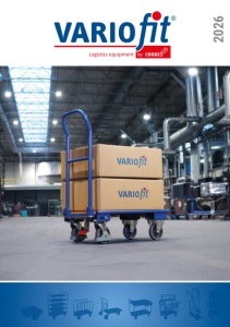7 Systemwagen ESD Werkstatt/Lager Karren Reifen-, Stahlflaschen-, Fass-, Palettenhandling Anhänger Schwerlast Spezial Zubehör NEUHEITEN ESD Euro-System-Roller 70 ESD Stahlrohrkarren 74 Sperrholzböden für Tragarmwagen 86-87 Kartonagewagen 94 Wasserflaschen-/Edelstahlrohrkarren 104 Routenzug 128-129 Anhängerkupplung 144 Richtungsfeststeller 166 Neues Zubehör: Richtungsrollen, Schreibpult, Halterung für Scanner, Fußschutz 170, 176, 179-180 UNSERE TOP BESTSELLER 2025 INHALT 2026 ENTWICKELT FÜR LANGLEBIGKEIT – MIT BIS ZU 12 JAHREN GARANTIE. Die gesetzliche Gewährleistungsdauer von 2 Jahren wird von uns freiwillig und aus Überzeugung für einen Großteil der VARIOfit® Produkte auf bis zu 12 Jahre verlängert. Ein Qualitätsversprechen! TISCHWAGEN S. 26 ETAGENWAGEN FEST VERSCHWEIßT S. 43 KLAPPBÜGEL WAGEN S. 19 STAHLROHR KARRE S. 100 SYSTEMWAGEN Basismodell 10 Rohrbügelwagen 23 Etagenwagen 32-48 Schiebebügel-/Magazinwagen 12-14 Plattenwagen/-ständer 23 Eurokastenwagen 49-51 Systemwagen 15-16 Kastenwagen 24-25 Beistellwagen 52-53 Schwerlastwagen 17 Tischwagen 26-27 Materialständer 54-55 Klappbügelwagen 19-20 Schwere/Schwerlast Tischwagen 28-29 Kistenroller 57 C + C Wagen 21 Tischwagen mit Wanne 30-31 Euro-System-Roller 58-61 Seitenbügelwagen 22 Griffroller 62-63 ESD ESD Etagenwagen 65-67 ESD Euro-System-Roller 70 ESD Werkstattwagen 73 ESD Eurokastenwagen/ Beistellwagen/Griffroller ESD Tischwagen 71 ESD Stahlrohrkarren 74 68 ESD Schiebebügelwagen/ ESD Schwere Tischwagen ESD Materialständer 69 72 WERKSTATT / LAGER Werkstattwagen 76-83 Plattenwagen/-karren 88-89 Kartonagewagen 94 Werkstückwagen 84-85 Materialheber 90-92 Zusatzartikel für Kommissionierwagen Tragarmwagen 86-87 Kommissionierwagen 93-95 96 KARREN Stahlrohrkarren 98-101 Stuhl- & Möbelkarren 105 Gerätekarren 110 Aluminiumkarren 102-103 Treppenkarren 106-107 Sperrgutkarre 111 Wasserflaschen-/Edelstahlrohrkarren 104 Aluminium Treppenkarren 108-109 REIFEN-, STAHLFLASCHEN-, FASS- UND PALETTENHANDLING Reifenhandling 113-114 Stahlflaschenhandling 118-120 Palettenhandling 126-141 Zubehör für Reifenregal/-wagen 115-116 Fasshandling 121-125 ANHÄNGER Handwagen 142-143 Fahrradanhänger 144 Rollenkarre, Rollenständer 143 Handpritschenwagen 145-147 SCHWERLAST Hebelroller und Rollplatten 148-149 Schwerlast-Rollplatten 149-150 Schwerlastwagen 152-153 Langmaterialwagen/-roller 151 Industrieanhänger 154-155 SPEZIAL Möbelhunde® und -sammler/ Triple-Dog Tisch-Heberoller 159 Entsorgung 162 156-158 Akten- und Büchertransportwagen 160-161 Be- und Entladen 163 ZUBEHÖR Rollenübersicht 170-174 Zubehör Handwagen/ Handpritschenwagen 175 Zubehör Karren 176-177 Zubehör Allgemein 178-180